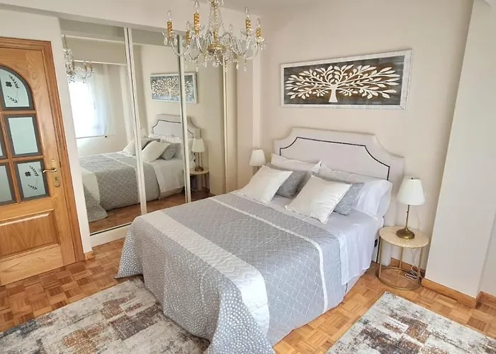 Apartamento M lägenhet ligger cirka 7 km från Plaza de Maria Pita, och ståtar med utsikt över gatan. 2 sovrum, 2 badrum och ett komplett kök finns på detta boende.